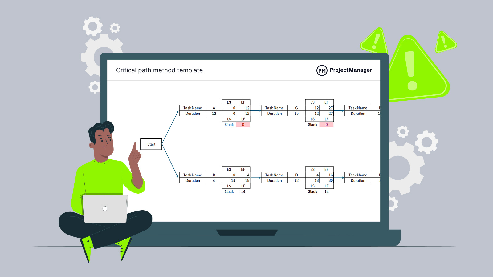 This critical path method template helps estimate the task duration to make an accurate project schedule and identify its critical path. But before getting into that, let’s start with some important definitions to be familiar with.