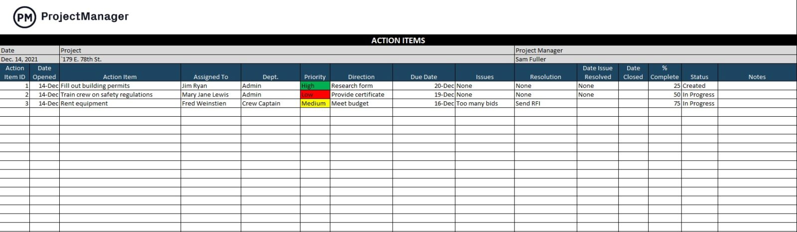 If you’re not ready to upgrade to project management software, we offer dozens of free project management templates that can help you manage your action items. Try the following templates to get your action items done by their due dates.