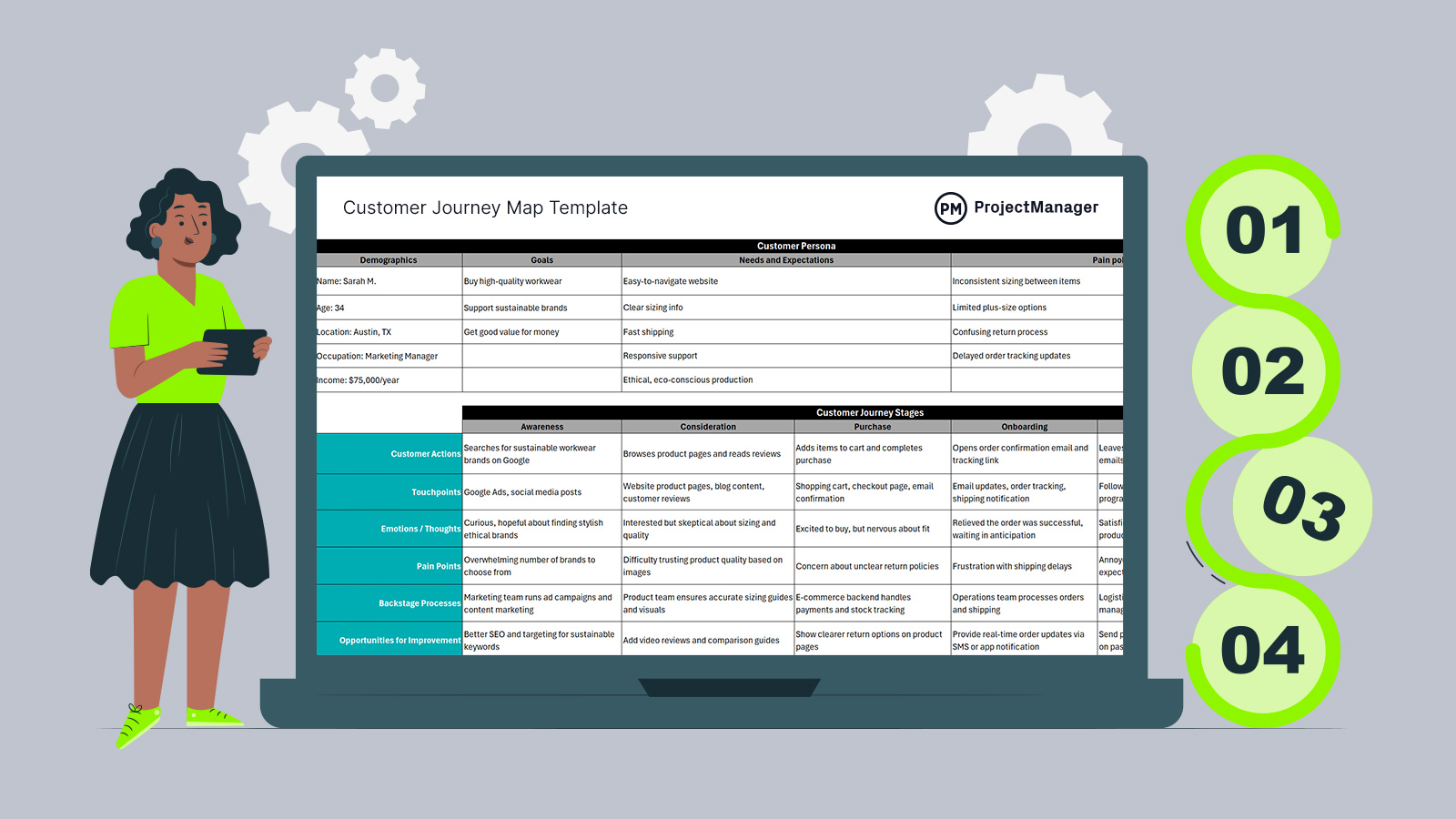This Excel-based customer journey map template is designed to be intuitive and flexible. Each section helps teams think critically about how customers engage with your brand, what they experience and where improvements can be made. Follow the steps below to get started and customize the map based on your product or service.