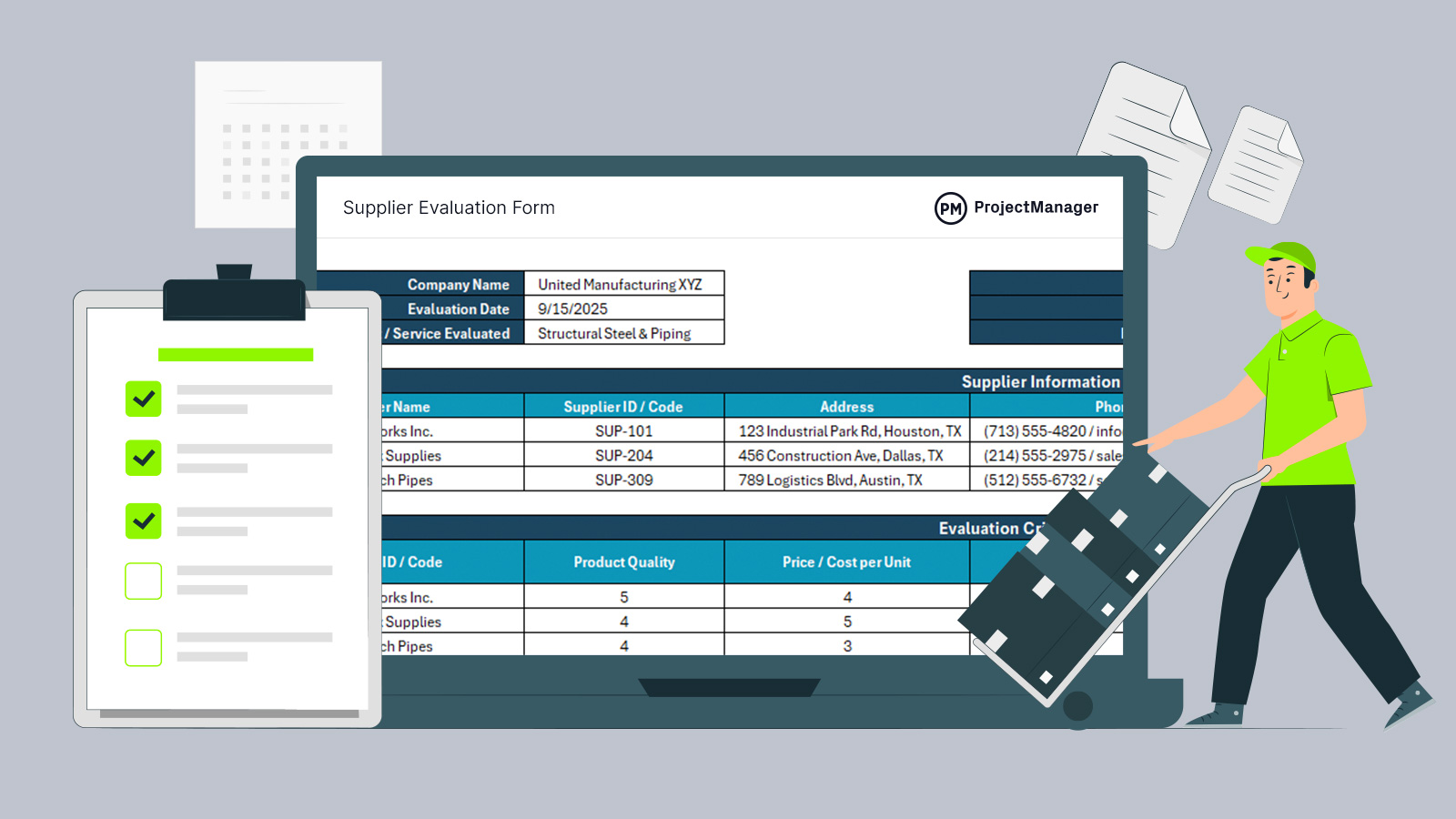 ProjectManager’s free supplier evaluation form for Excel
