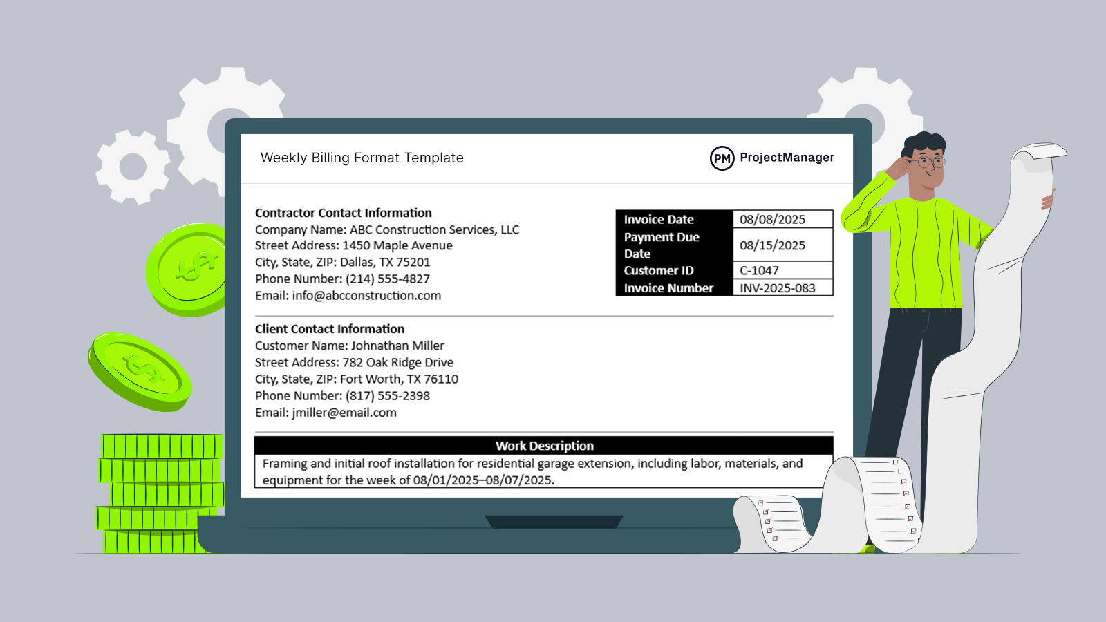 Another advantage of a weekly billing format is that it keeps both service providers and clients accountable. Regular invoicing minimizes the likelihood of misunderstandings about project scope or work completed. It also spreads out billing rather than creating large, infrequent invoices that can be harder for clients to manage. This consistency can lead to faster payments and a more predictable financial cycle.