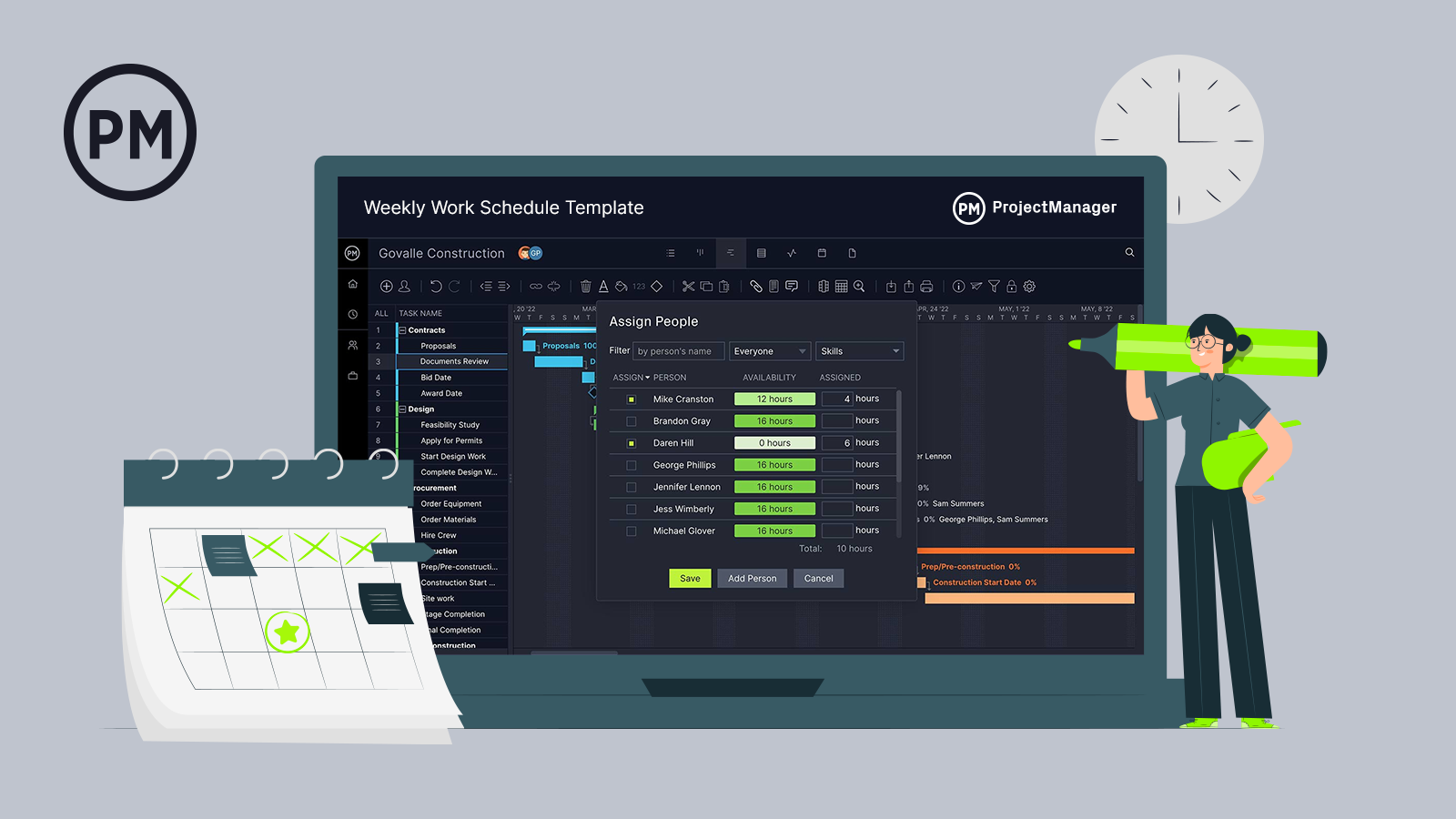 ProjectManager’s Gantt chart is more powerful than a work schedule template. Learn more